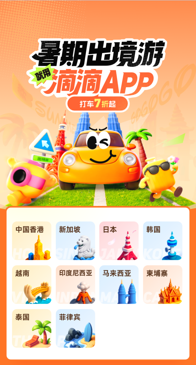 暑期跨境游就用滴滴App 畅游新马泰打车7折起