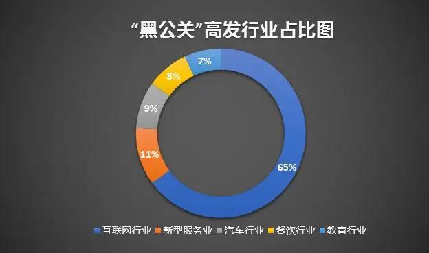 据新华社报道,近年来,包括腾讯、美团、拼多多、360等在内的企业,均多次披露遭遇“黑公关”的详细情况。分行业看,来自互联网行业的占比高达65%,其他行业中,新型服务业占比11%、汽车行业占比9%、餐饮行业占比8%、教育行业占比7%。