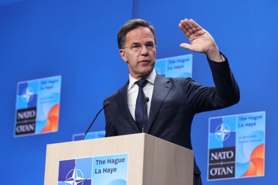 6月25日,在荷兰海牙,北约秘书长吕特在北约峰会期间出席新闻发布会。新华社记者赵丁喆摄