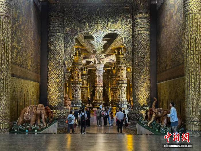 图为馆内展示的木雕艺术作品局部。中新社记者 潘雨洁 摄